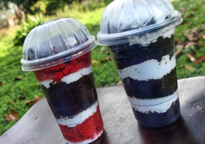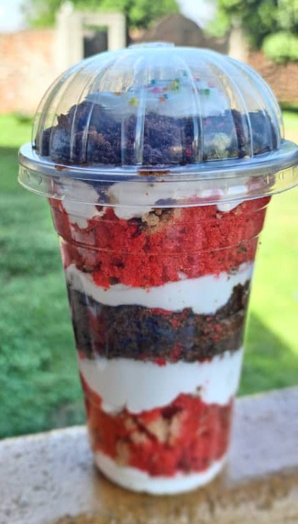 The sweetest little treat that’s ready to eat anywhere, anytime! Our Cake in Jars are actually served in convenient, sturdy disposable cups – no spoon needed (but we’ll give you one anyway!). Each cup is packed with soft, freshly baked cake layers and generous swirls of creamy frosting, just like eating straight from the mixing bowl, only prettier.
