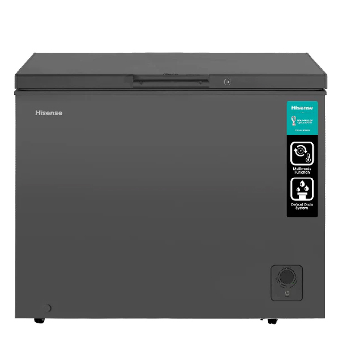 Elevate your food storage with the Hisense FC310SH 310L Chest Freezer, a high-capacity and reliable appliance designed for large households, small businesses, or bulk storage needs. This sleek silver deep freezer offers a 310-liter net capacity, featuring a fast freeze function that quickly cools items to lock in freshness, ideal for freezing large quantities. It includes a mechanical temperature control with an adjustable thermostat, a removable wire basket for organized storage, and a convenient defrost drain for easy maintenance. Powered by eco-friendly R600a refrigerant, the Hisense FC310SH delivers energy-efficient performance (75W) and quiet operation, complemented by a power indicator light for added reliability