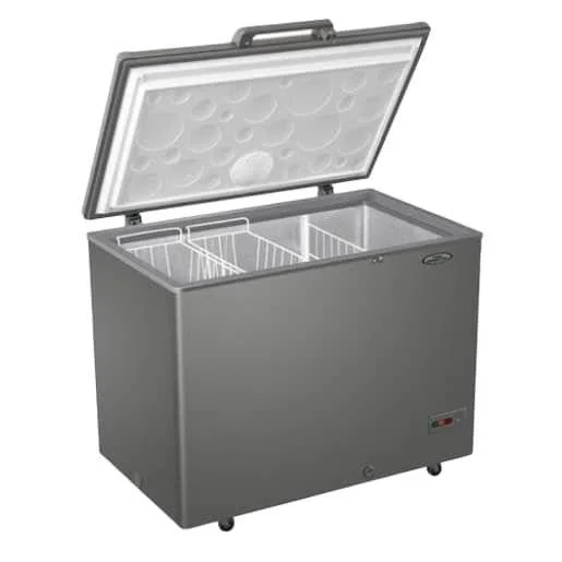 Optimize your food storage with the Hisense FC400SH 306L Chest Freezer, a high-capacity and dependable appliance ideal for large households, small businesses, or bulk storage needs. This sleek silver deep freezer offers a 306-liter net capacity, featuring a fast freeze function that rapidly cools items to preserve freshness, perfect for stocking up on groceries. It includes a mechanical temperature control with an adjustable thermostat, a removable wire basket for organized storage, and a defrost drain for easy maintenance. Powered by eco-friendly R600a refrigerant, the Hisense FC400SH ensures energy-efficient operation (75W) and quiet performance, with a power indicator light for added convenience, making it a practical choice for any home or commercial space