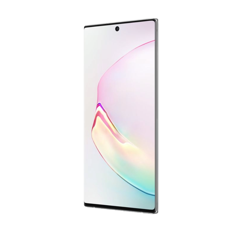 Product details Introducing level powerWith Galaxy Note10 and Note10+ we've designed a mobile experience that’s like a computer, a gaming console, a movie-tech camera, and an intelligent pen, all in one device. Now comes in two sizes: powerful and powerfulFor the first time ever, you can choose the Note size that fits you best. Impossibly thin designHigh-polish metal and glass meld seamlessly — all in an impressively slim design. WIDTH7.9mmUpper half of Galaxy Note10 seen from the side with no buttons to show its thin design. It turns to reveal the Infinity-O Display seen at a three-quarter angle.Cinematic Infinity-O DisplayWith a tiny, front-facing camera lens, the display is a Dynamic AMOLED that's brilliant in all conditions. Close-up of Galaxy Note10 plus’s cinematic Infinity-O Display with a flower onscreen Woman sitting in a car holding Galaxy Note10 plus in landscape mode. Download manager notifications appear showing three large files being downloaded at the same time thanks to the fast data capabilities Galaxy Note10 seen in landscape mode with a shadow and a hand touching the top as if its a laptop Power to make your day last all dayOur cutting-edge battery intelligence ensures Galaxy Note10's 3500mAh (typical) outlasts your day.4, 5 SUPER FAST CHARGING30MIN. CHARGE GIVES YOUAll dayPOWER6 Think it. Write it.Capture it Close up of S Pen ejected from Galaxy Note10. On scroll, the S Pen and Galaxy Note10 move further from each other to reveal text Four Galaxy Note10 phones seen laying face up with a variety of Samsung Notes uses onscreen, and two blue S Pens. One screen shows a sketch of a face, another shows Text Export, the shows a note with the zoom GUI overlaid on top, and the last phone shows writing with the background color settings menu Control your device through clicks and gesturesAir actions let you zoom in or out with the camera, change the volume, or flip through photos and more with a simple wave or click.9 image Galaxy Note10 seen in landscape mode with a Screen off memo onscreen Flat lay of several accessories including LED View Cover, Galaxy Watch Active2, Galaxy Buds, and Protective Standing Cover